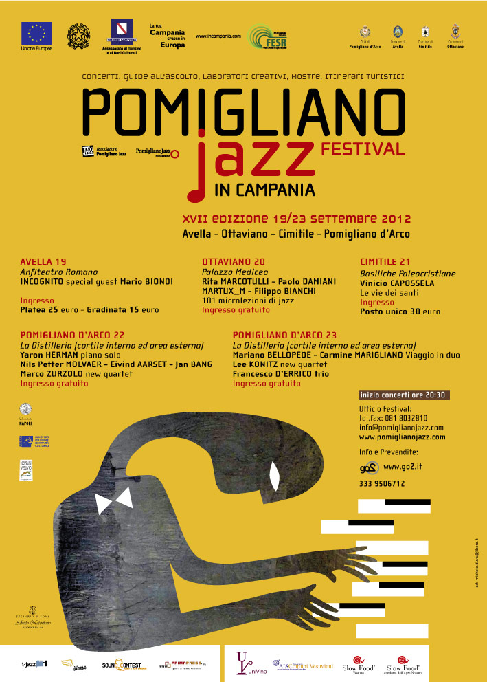 Il Pomigliano Jazz Festival è un appuntamento di livello internazionale, promosso e finanziato dalla Regione Campania, in collaborazione con il Comune di Pomigliano d’Arco, il Comune di Avella, il Comune di Cimitile, il Comune di Ottaviano e con la Fondazione Pomiglianojazz.
