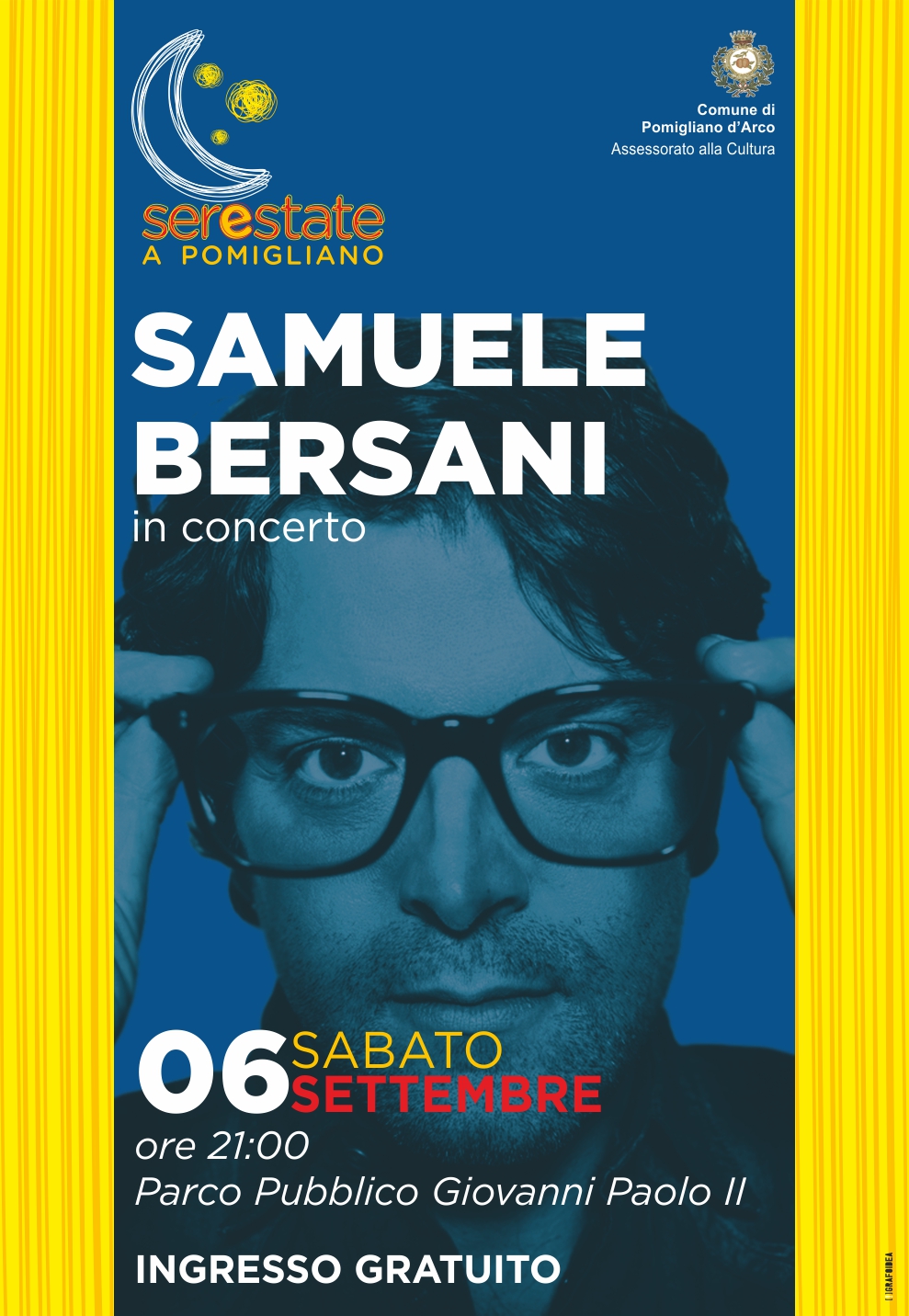 SerEstate a Pomigliano: Concerto di Samuele Bersani al Parco Pubblico Giovanni Paolo II - Sabato 6 settembre, ore 21.00