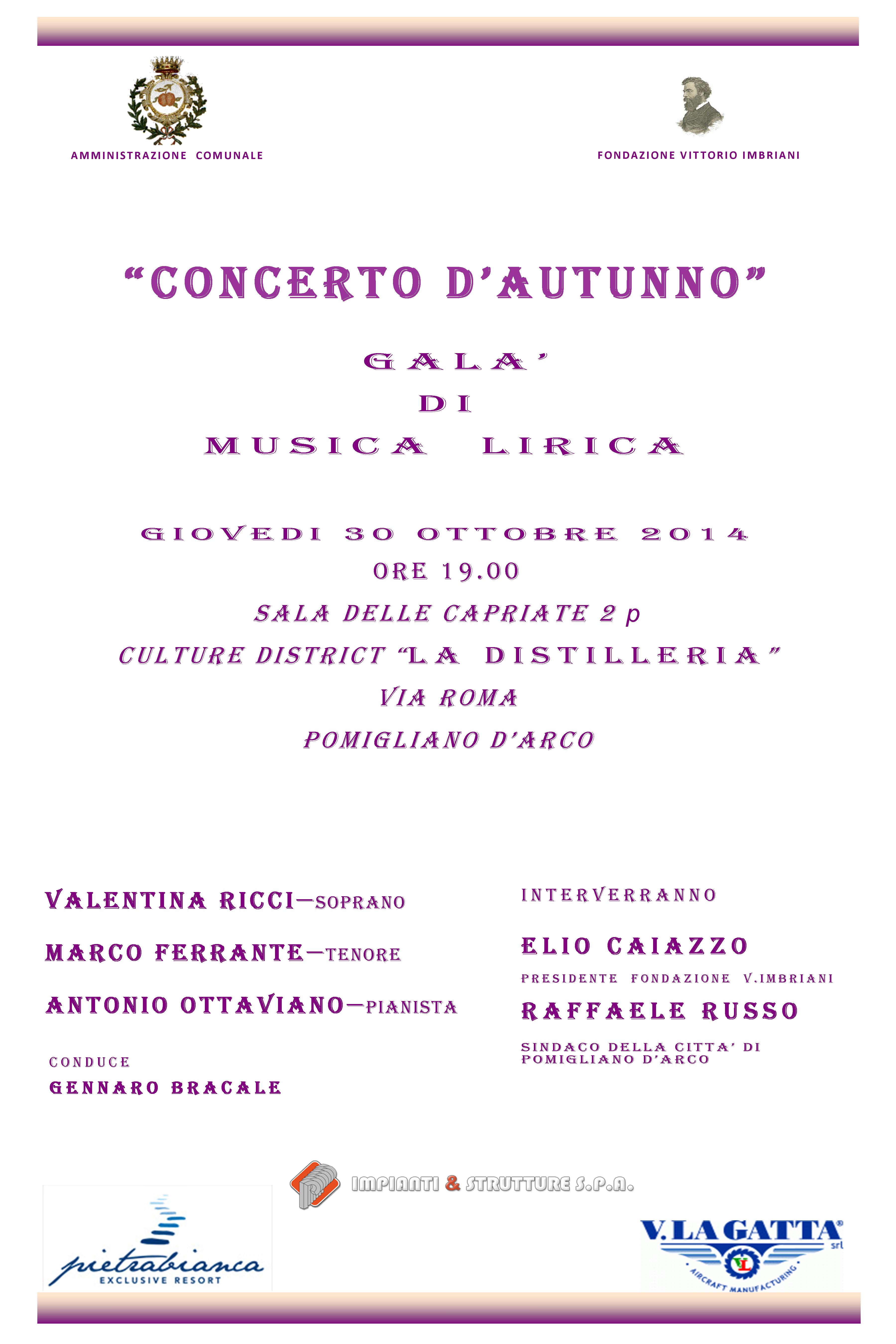 Invito alla Cittadinanza: Gran Galà della Lirica - 30 ottobre 2014, ore 19.00 presso Culture District "La Feltrinelli" - Via Roma, Pomigliano d'Arco