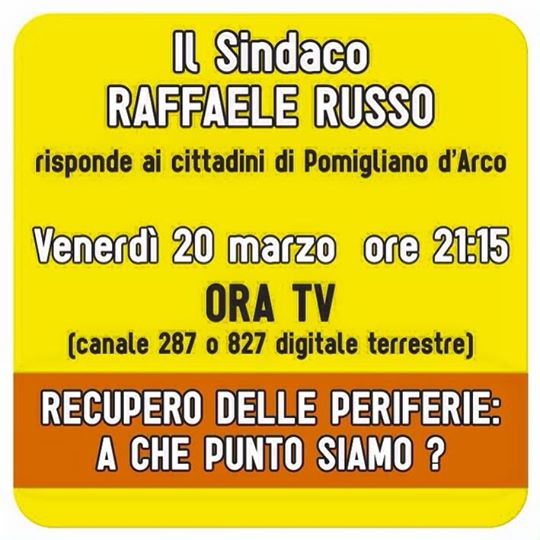 Comunicato: Il Sindaco Raffaele Russo risponde ai cittadini di Pomigliano d'Arco su "Recupero delle periferie: a che punto siamo"