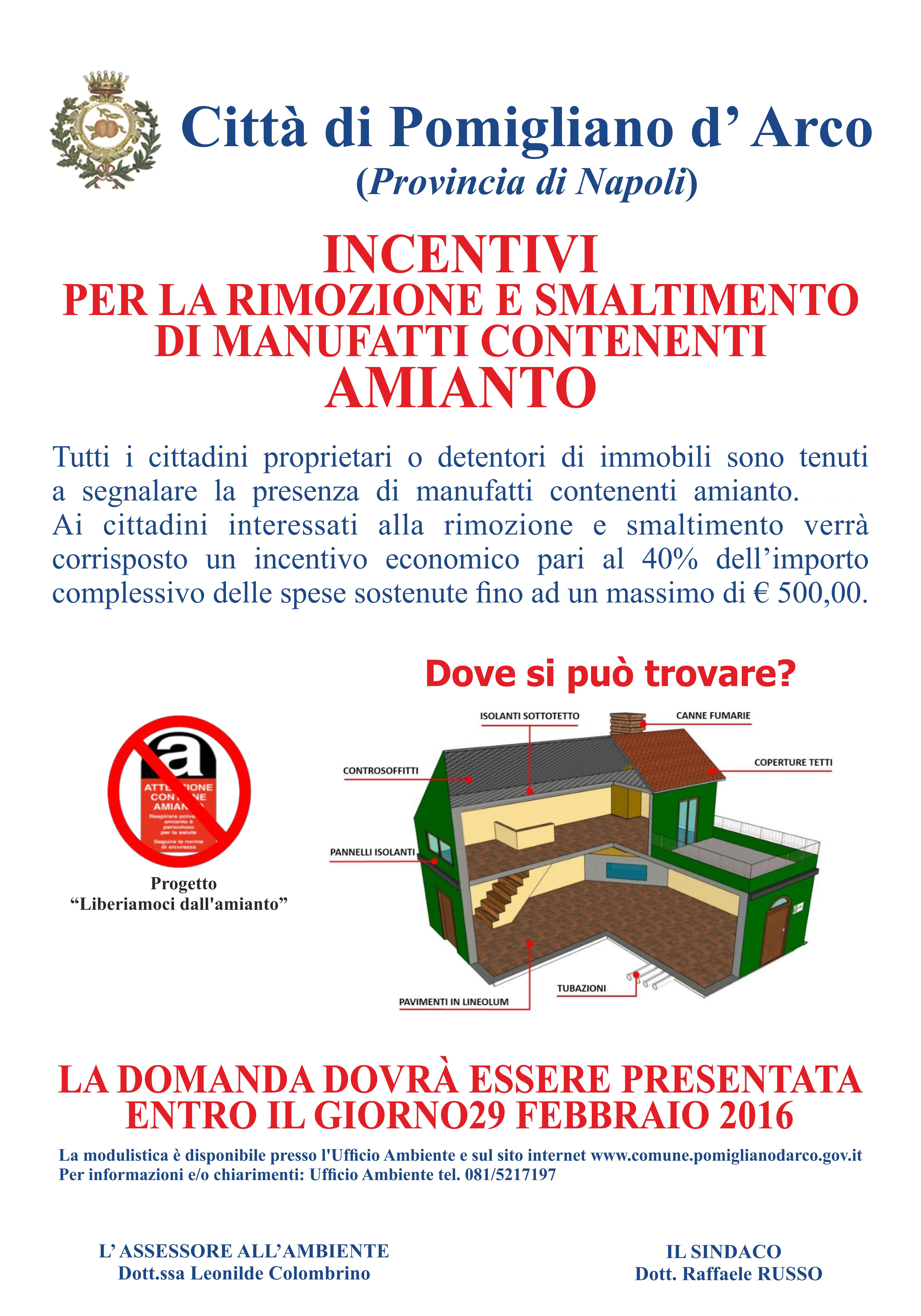 Ai cittadini interessati alla rimozione e smaltimento verrà corrisposto un incentivo economico pari al 40 % dell’importo complessivo delle spese sostenute fino ad un massimo di €. 500,00 compilando il modello "PARTECIPAZIONE AL PROGETTO"