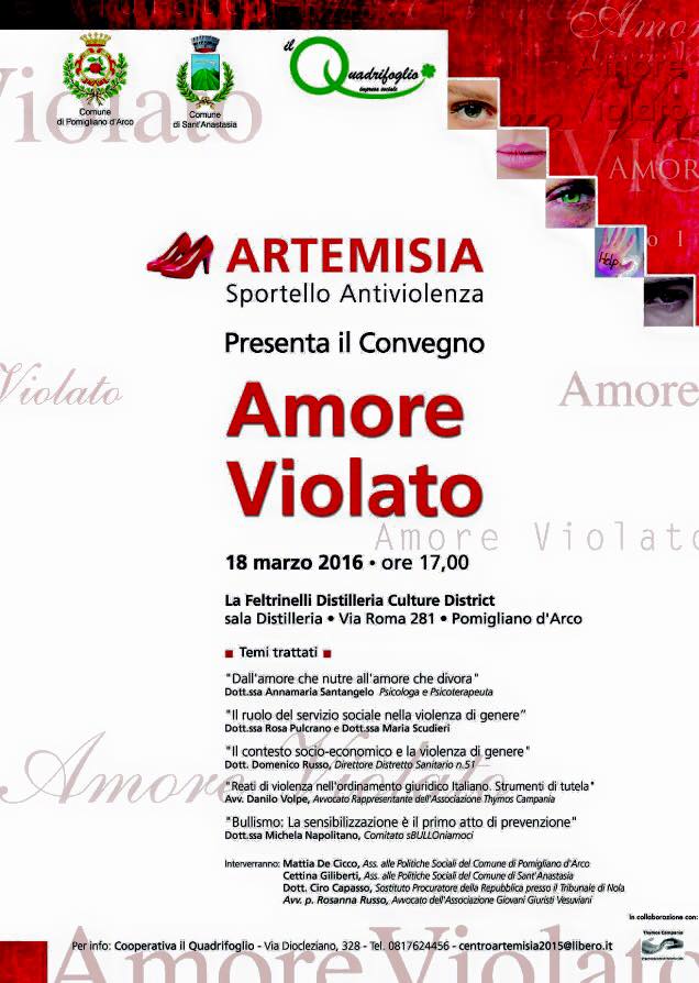 Si svolgerà un convegno, dal titolo: "amore violato". Venerdì 18 marzo, ore 17, presso la Distilleria - Pomigliano d'Arco.
