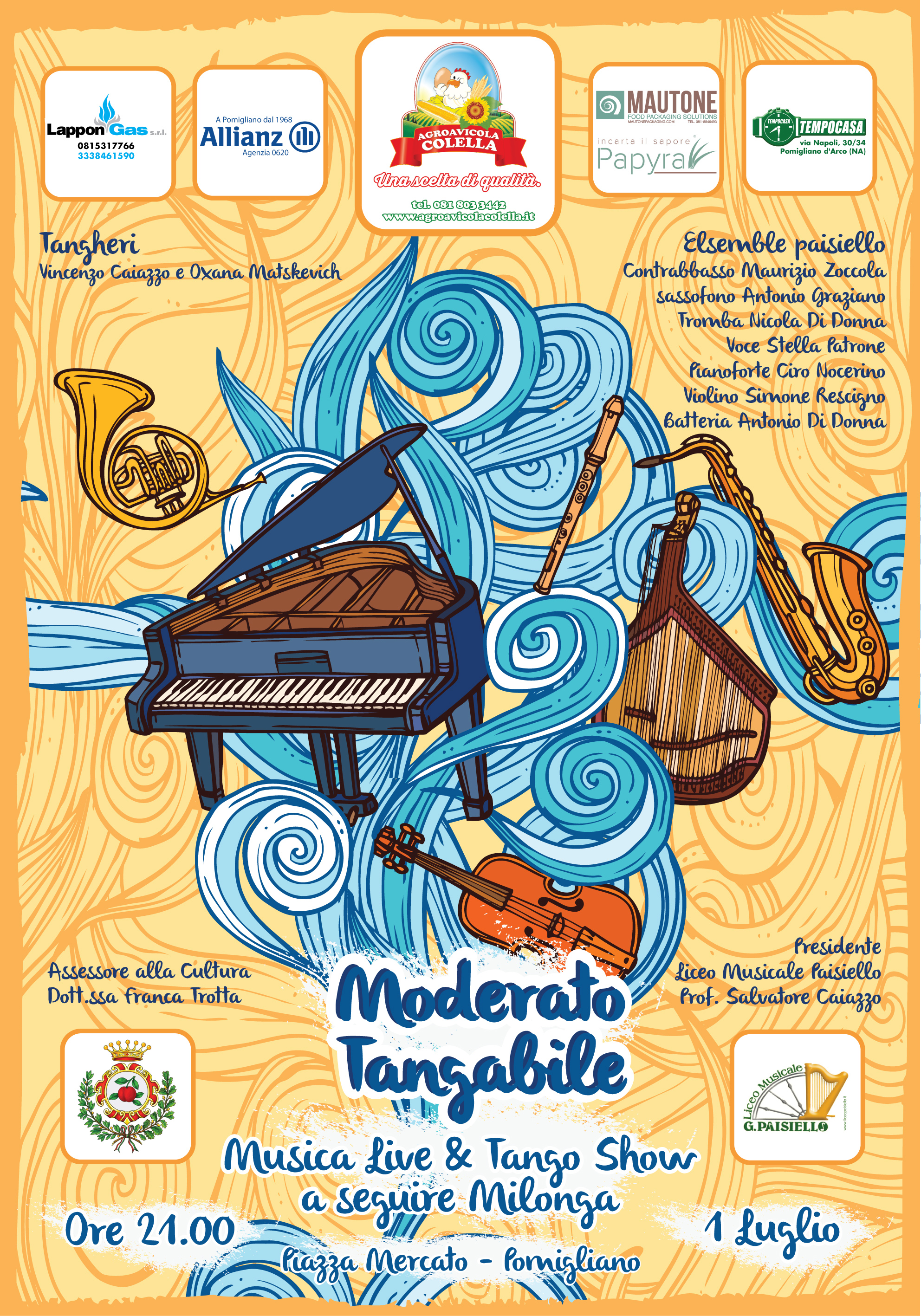In occasione della rassegna estiva “Estate in Città”, la Cittadinanza è invitata, il 1 Luglio 2017, ore 20,30, presso Piazza Mercato-Pomigliano d’Arco- all' EVENTO di TANGO, a cura del Liceo Musicale Paisiello.