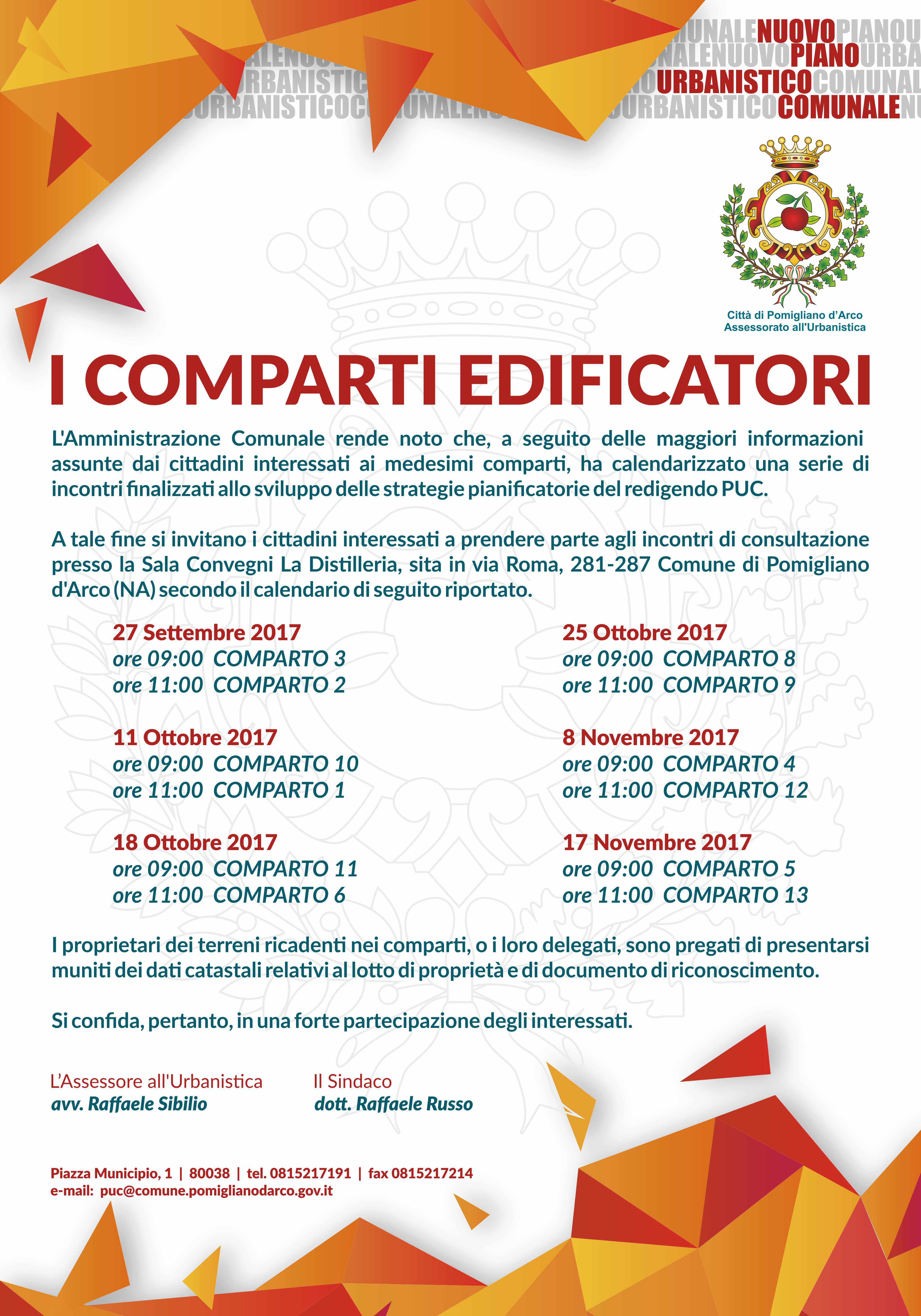I proprietari dei terreni ricadenti nei comparti edificatori, o i loro delegati, sono pregati di presentarsi muniti dei dati catastali relativi al lotto di proprietà e di documento di riconoscimento.
