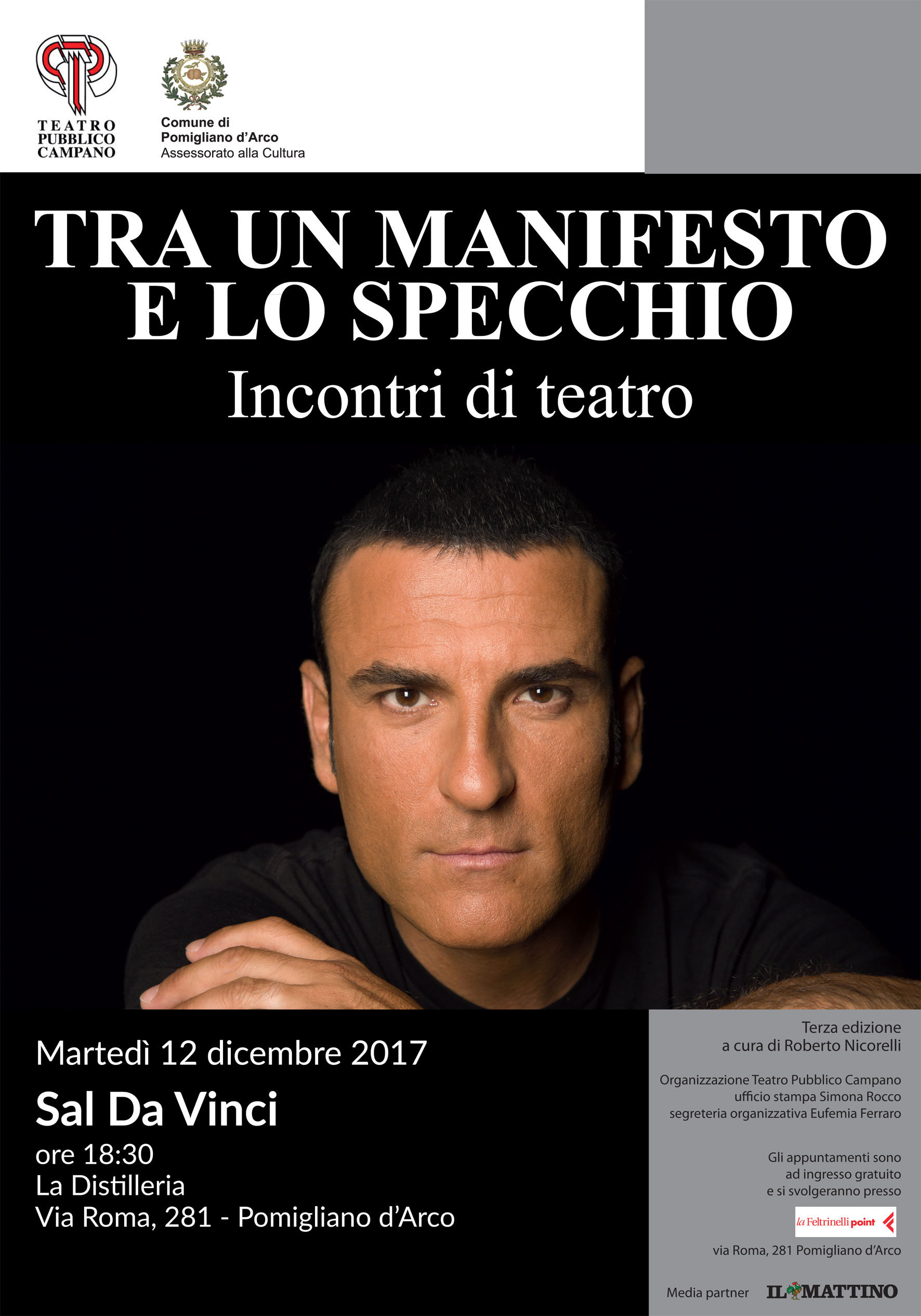 Martedì 12 dicembre alle ore 18:30, presso la Feltrinelli point di Pomigliano d'Arco, secondo appuntamento col cartellone "Tra un manifesto e lo specchio": incontro con Sal Da Vinci.