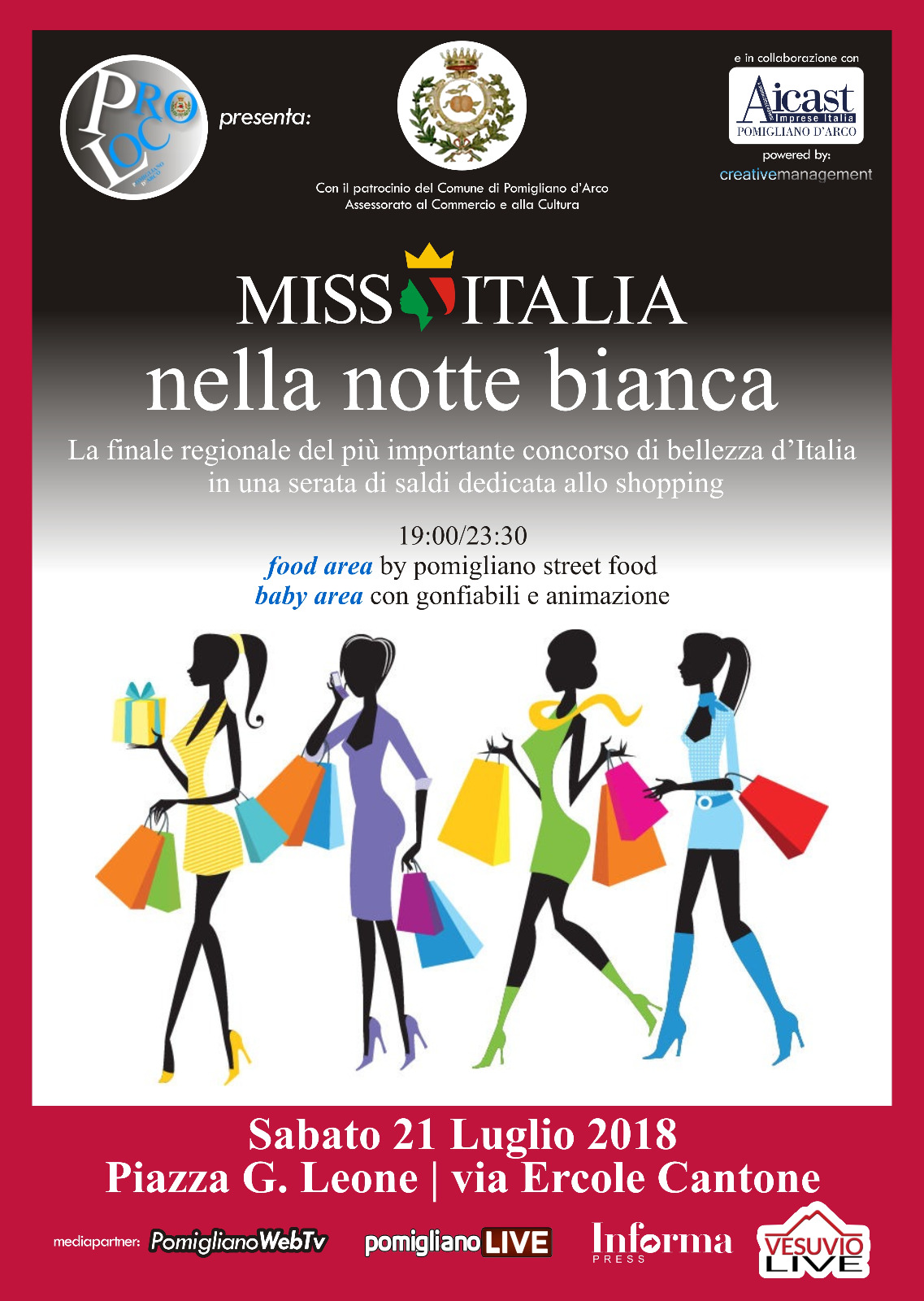 In occasione dei primi giorni di saldi nazionali, l'Associazione Pro Loco Pomigliano, con il patrocinio del Comune di Pomigliano d'Arco, Assessorati al Commercio ed alla Cultura, ha organizzato la manifestazione “Miss Italia nella Notte Bianca”.