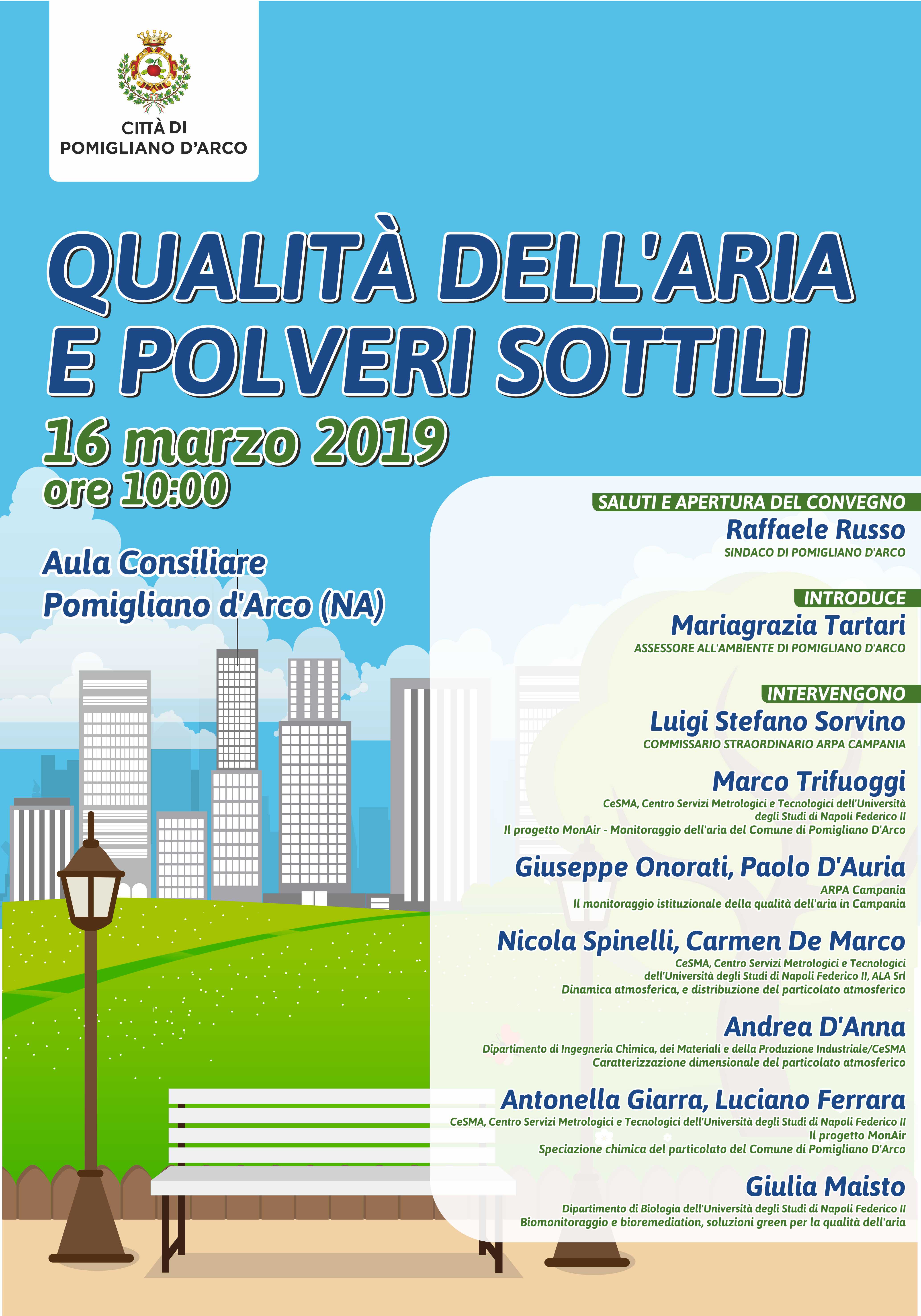 Sabato 16 marzo alle ore 10.00, presso l'Aula Consiliare, si terrà un Convegno sulla qualità dell'aria e polveri sottili. La cittadinanza é invitata a partecipare. In allegato il programma dell'evento