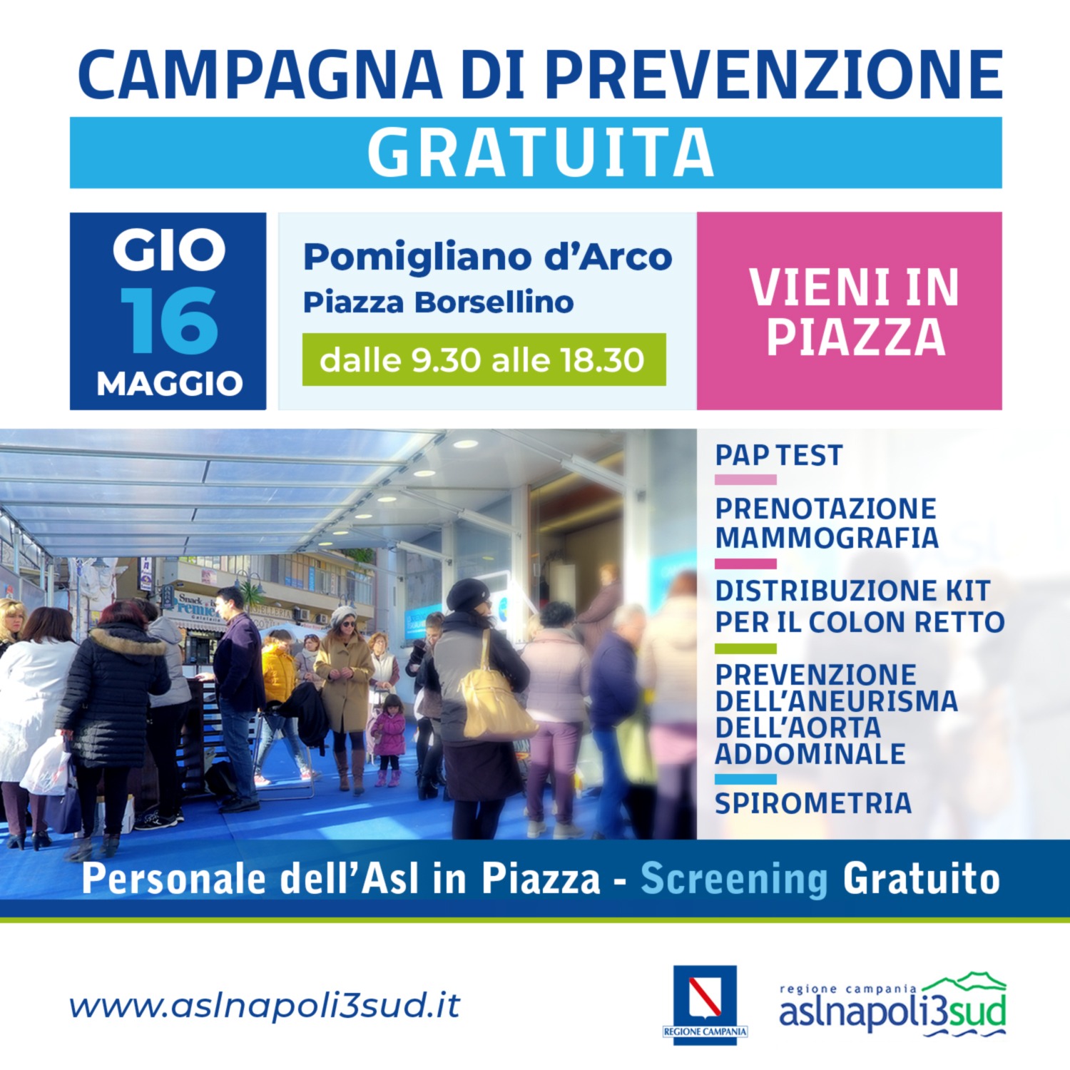 Tale evento si terrà in Piazza Borsellino (adiacente sede ASL NA 3 Sud - Parco Partenope).