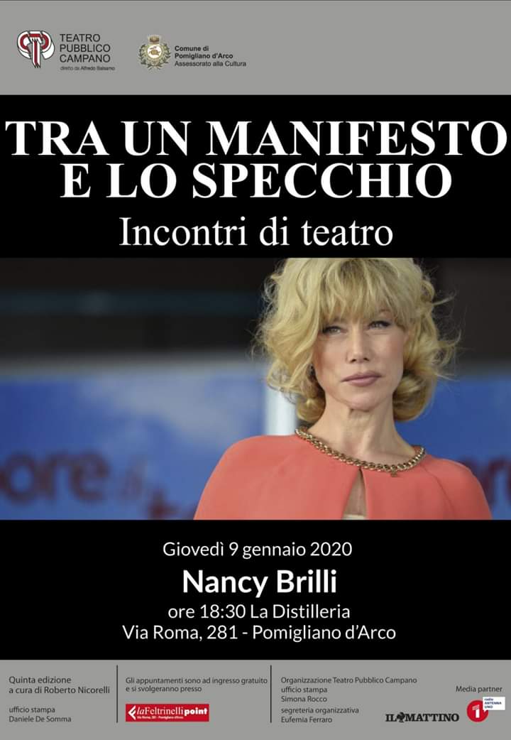 Tra un manifesto e lo specchio - Incontri di teatro - Nancy Brilli - Giovedì 9 gennaio ore 18.30 presso La Distilleria - via Roma